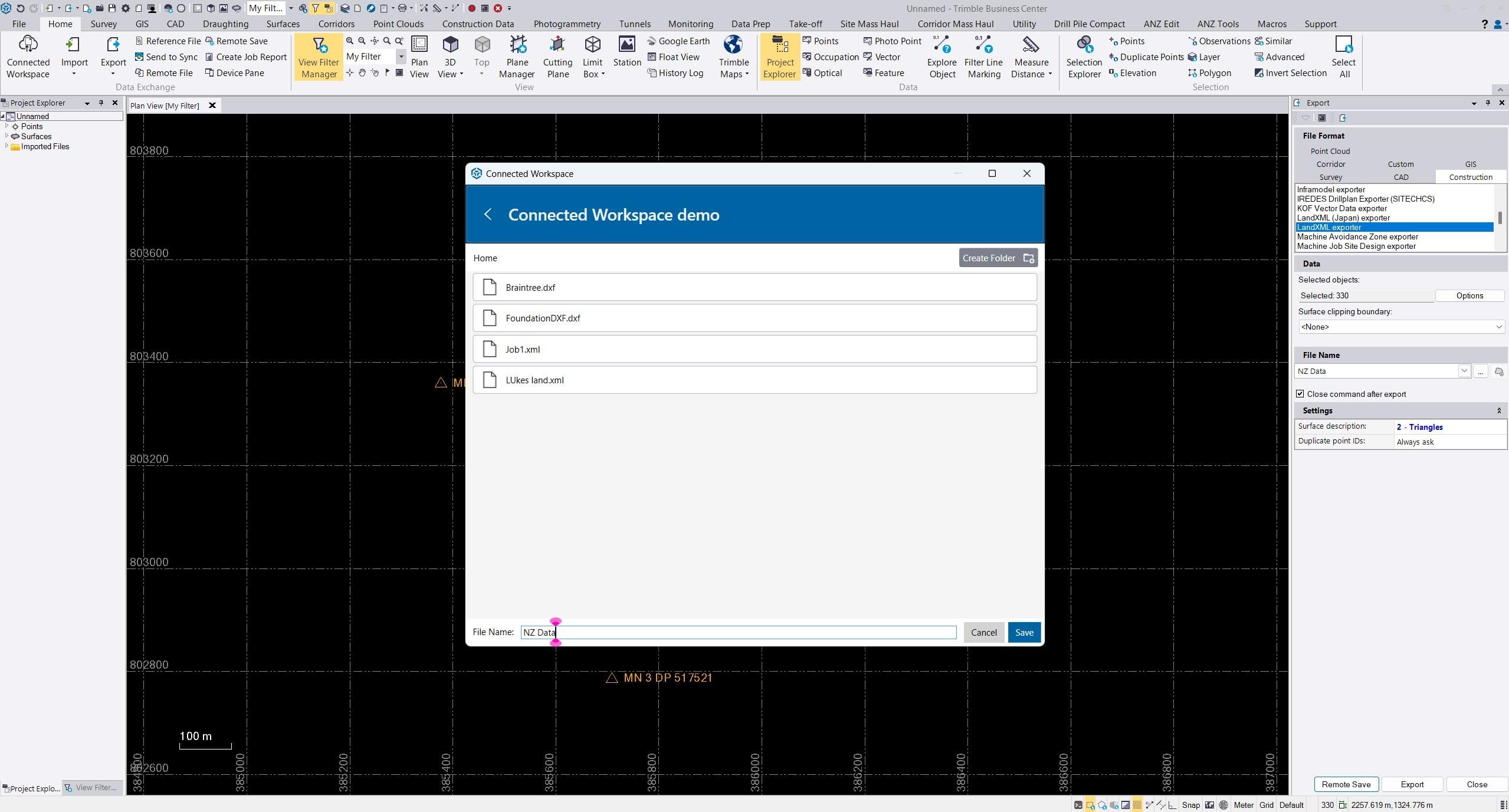 The connected workflow offers a comprehensive field-to-finish process, linking TBC with Trimble Access and back again. This seamless connection ensures surveyors are integrated into a unified system, allowing for smooth data flow and enhanced collaboration.